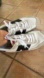 Stylish white and black sneakers with gray accents. Perfect for casual wear. Wrong once or twice