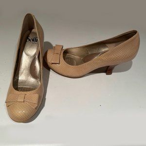 New beautiful cream Sofft heels with front bow, textured finish. Sz. 7.5
