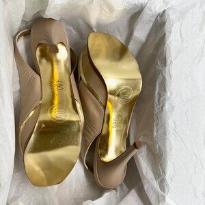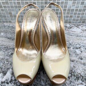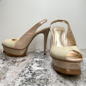 New! bebe ZAHARRA Ivory/Nude Slingback Platform Sandals 7