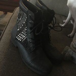 Black fashionable beaded boots never worn would look great with denim jacket and leggings or super skinny jeans