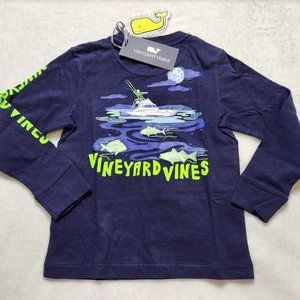 New boys 6 Vineyard Vines night fishing glow in the dark long sleeve pocket tee
