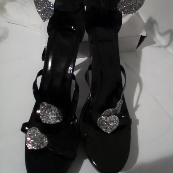 Black highheel shoes with sparkling heart embellishment at the ankles. Size 8 PV material