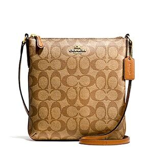 New condition Coach North/South Crossbody bag in signature coated canvas.
