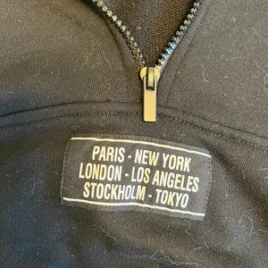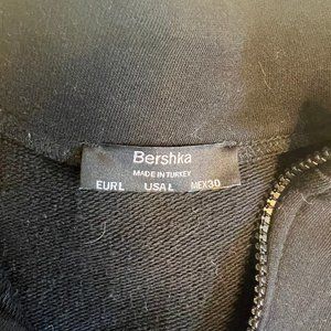 Bershka cropped sweatshirt, never worn, black jersey with chunky utility detailing. Very cute. Size L but closer to an M.
