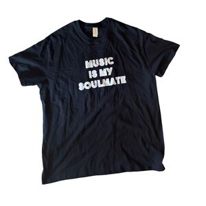 Express your love for music with this stylish black graphic t-shirt. Featuring the bold statement 'Music Is My Soulmate,' this shirt is perfect for casual outings. Comfortable and trendy, it's a must-have for any music enthusiast.