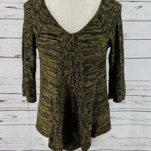 New direction knitted Petite Small Quarter sleeve Brown Gold Sweater