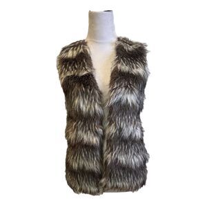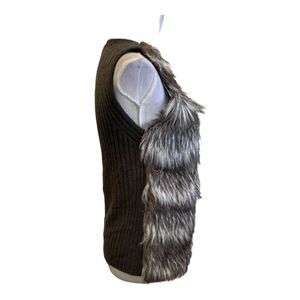 New directions Faux Fur and Knit Preppy Vegan Gray Vest Size S