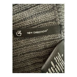 This New Directions vest in size S features a faux fur outer shell in a stylish striped pattern. The mid-length sleeveless vest is designed with a preppy, vegan style in a gray color, making it suitable for travel, casual wear, or work attire. Crafted from knit fabric, this winter and fall essential showcases a faux fur theme inspired by animals, perfect for adding warmth and a touch of sophistication to any outfit.