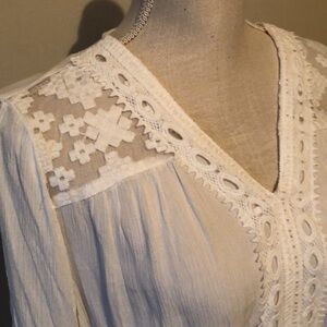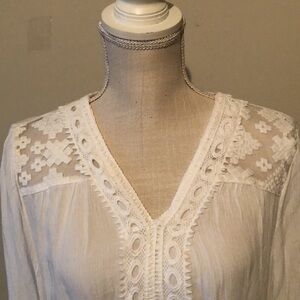 New Directions white blouse with lace inserts in shoulders, embroidered lace down front and sleeves . Very feminine. Sz PM. NWOT