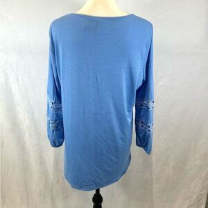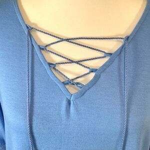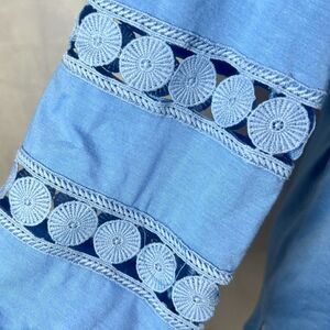 Cross front design with beaded tassels. Long sleeves with beautiful embroidered lace detail. Euc