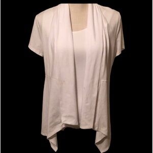 New directions white cardigan with open shawl lapels, short sleeves. Lace detail on back yoke. Small, Nwot