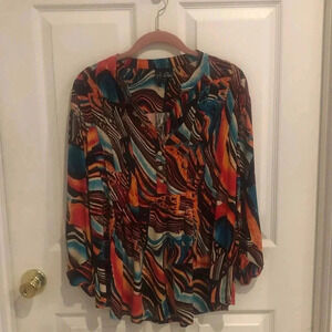 Bright colors make this flowing shirt look great.