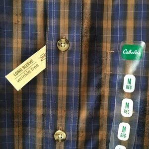 Never worn Cabelas (bass pro shop) long sleeve outfitter series brown/blue/black very handsome shirt
