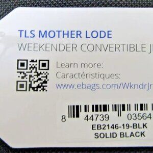 New eBags TLS Mother Lode Weekender Convertible Jr. Backpack EB2146-19-BLK Solid