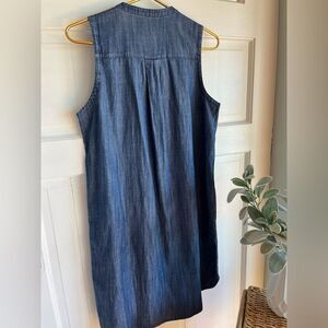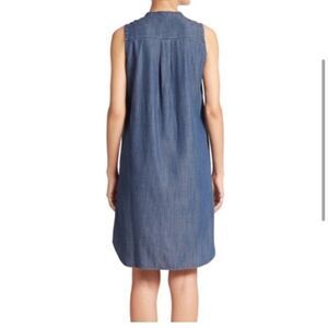 New eileen fisher denim sleeveless button down mandarin collar shift dress