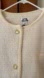 Stylish cream button-up jacket with gold accents. Features front pockets and a cozy texture.