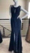 New elegant long dress with built-in bra. Made delicately with great fabrics and beads on it. Has some see-through to show the shape of your body and has slit beaded in the bottom
