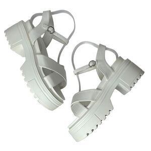 New faux Leather White Chunky Platform Sandals 7 crossover Straps