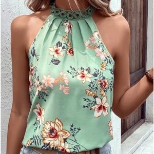 New floral green print sleeveless halter top