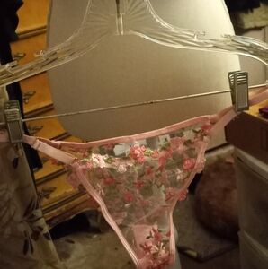 New, floral pink embroidered sheer mesh lingerie set.underwire bra&bikini size m