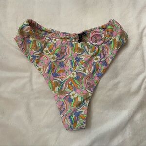 Hey, sunshine. Feeling groovy? Tap into a 70s-inspired look with a high-waisted bikini bottom featuring a swirling, retro floral print and O-ring hardware. Pair with the matching Devon top for an out-of-sight look.