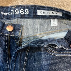 Gap jeans new Size 18 kids but fit like a 25/26 Waist flat 14 Inseam 30 So cute distressing and color are made to be like that