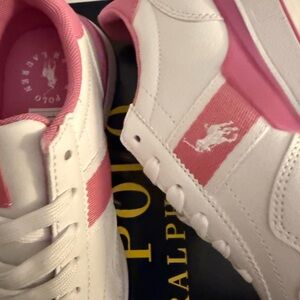Stylish Ralph Lauren sneakers in white and pink. Perfect for everyday wear.