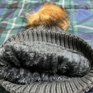 New gray with pompon faux fur lined hat