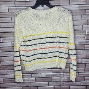 New sweater for women by greige. Women’s SIZE MEDIUM. This top is ivory with pink, blue, and yellow stripes. It is long sleeve and it lightweight with open weaves. You can see through it. This top is NEW WITH TAGS. Made of 100% acrylic and machine washable. Great for cooler days, or any casual event. See pictures for details. Message with any questions.