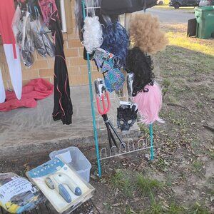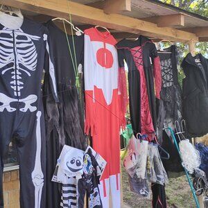 I have a bundle containing new halloween costumes and accessories still with tags. The bundle contains 6 wigs, 10 little girl costumes, 4 little boy costumes, 3 unisex little kids costumes, 2 infant unisex costumes , 2 infant 4 adult unisex, 1 woman's , 8 witches hats, 4 stretch spider webs, 4 packs of treat bags, 3 adult mask, 12 pumpkin masters all in one pumpkin carving kits, 3 family pumpkin carving kits, 1 pitch fork 5 tubes make up and much more. If you were to buy all this for the retail price on the tags it would be more than $330.00. I am asking $100 obo