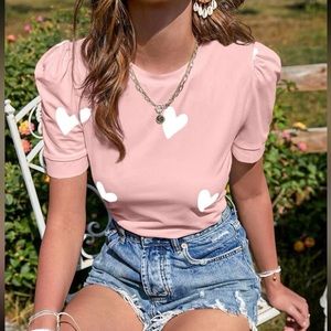 New heart print short sleeve top