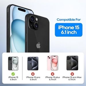 New iPhone 15 Clear Case with 2 Tempered Glass Screen Protector + 2 Camera Lens Protector