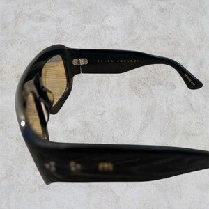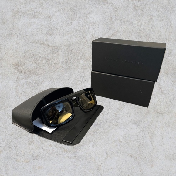New in Box Elisa Johnson Aries Black Gloss Frame Olive Green Lense Sunglasses with Case and Cloth. Excellent Condition.