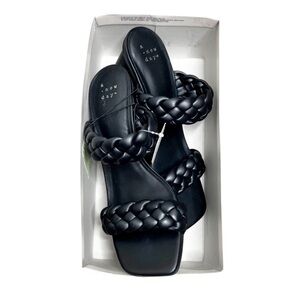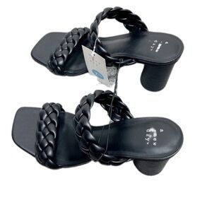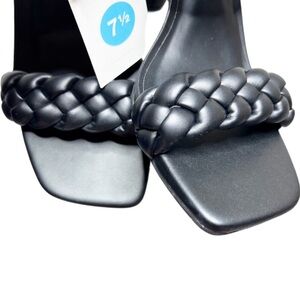 New in Box A New Day Basil Heel. Women’s heeled sandal. Black color. Braided puffy straps in faux leather. Square toe bed. Circular heel with an alligator texture. Super trendy style. Formal wear. Brand new condition, box included. Size 7.5. Style: 096-03-0354. All man made material. Made in China.