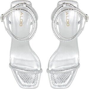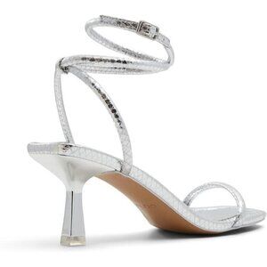 New in Box ALDO Womens DIME Strappy Sandals 8.5M Silver Snakeskin Wedding Formal
