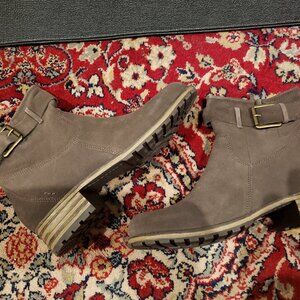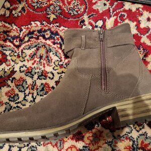 New in Box Clarks Marana Amber Taupe Suede Ankle Boots - Size 8