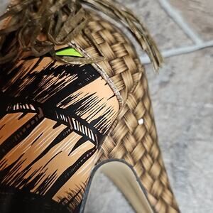 Bring on the tropical glam with these flirty and fierce Iron Fist Tiki Toes Heels โ the perfect mix of pin-up sass and island vibes. These head-turning peep toe platforms feature a fun tiki-inspired design, complete with a textured brown rattan bow on the back for a playful finish. The bold silhouette and sky-high platform make these heels your go-to for standing out on nights out, themed events, or just embracing your inner retro diva. ๐น