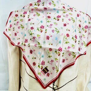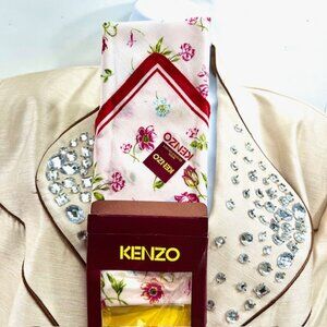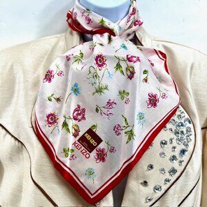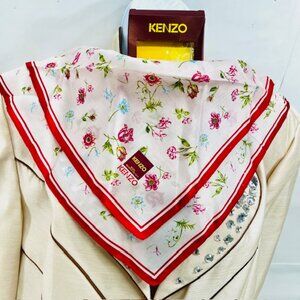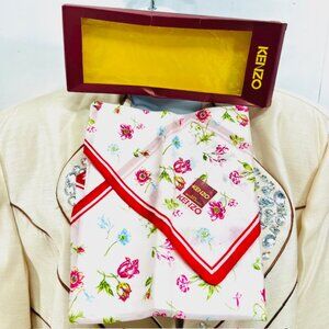 #61 New in Box KENZO Paris Mini Scarf/Handkerchief cotton 18"x18" , color light pink green floral with red trim, Desiged in Paris, made in Japan. Excellent Condition, no mark no stain, Sell As Is