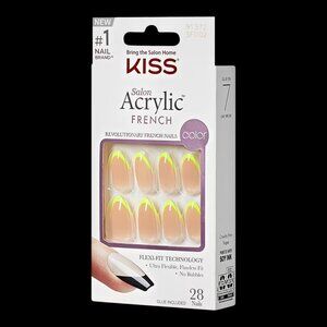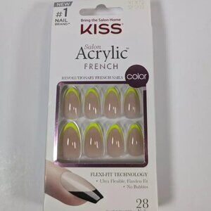 New in Box KISS Salon Acyrlic French Color Medium 28 Nails + Glue Flexi-Fit