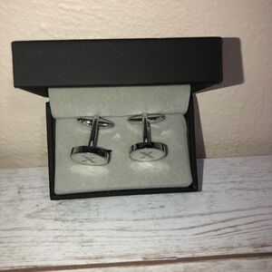New in Box Mother Pearl X Letter Initial Silver Tone Cuff Link