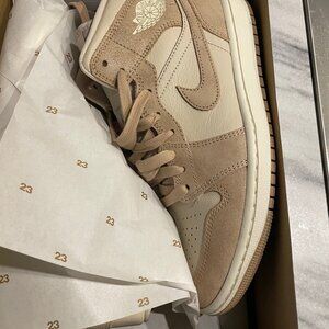 Brand new in box Air Jordan 1 Mid SE "Legend Light Brown" sneakers in womens size 9. Received for Christmas last year and never wore them because they were the wrong size.