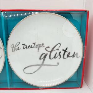 New in Box Set of 2 Christmas Dinnerware Plates White With Silver Lettering