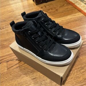 Trendy high-top sneakers with a black upper and white sole. Easy lace-up design. Ideal for active kids.