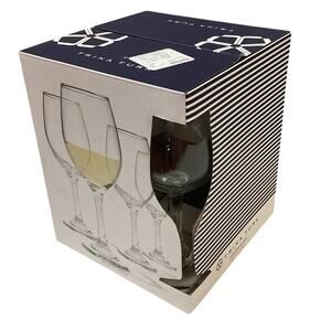 New in Box Trina Turk Clear Lucid 13.9 oz Dishwasher Safe Wine Glasses Set of 4