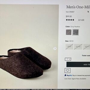 Purchased two pairs and only needed one. Sz 42 would fit for a woman's 11/12 or mens sz 10. Still selling on the GH website. I paid $99 plus shipping. The Espresso color in sz 42 is no longer available. Wool slides that go the extra mile for style and comfort. Crafted by artisans in Italy just for us in a water-resistant wool blend, with Italian leather trim, a cozy faux-shearling footbed, and a durable sole for his quick trips to the mailbox. Great for quick trips to the gym, walking the dog or just around the house.