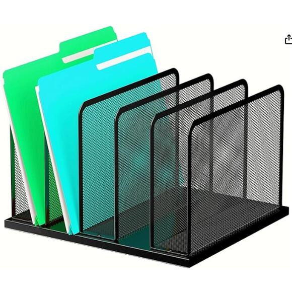 New in Box- Upright Mesh Desk File Organizer 5 Sections, File Sorter- Black