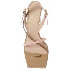 From the website: Luxury Amsterdam-based designer, Wandler, captures up-to-the-minute style in the Elza Sandals. The soft palette complements a summer wardrobe, with the slender leather straps joined by a shapely square toe. Slip it on with a blush pink blouse and slim-cut white jeans. Material: lambskin Heel height: 3.5 inches