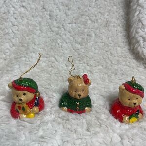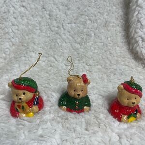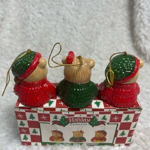 New in Box set of 3PC ceramic Bear Bell Ornament Red ,Green & Tan colors Pre owned with box in great used condition.normal wear see all pictures any questions please message.