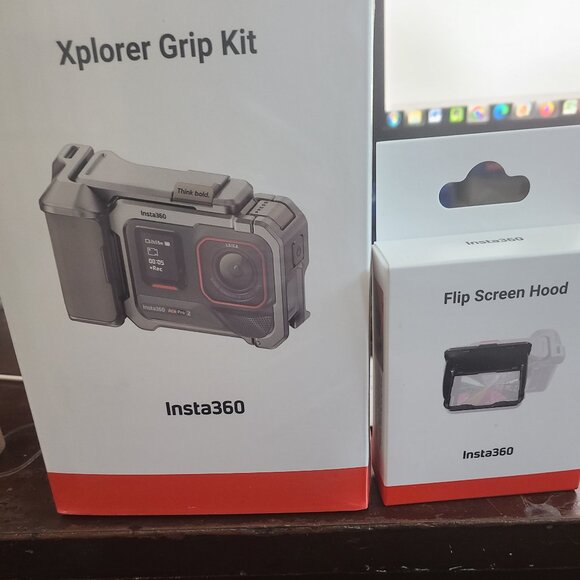 New in Box x 2 Xplorer Grip Kit Insta360 Flip Screen Hood