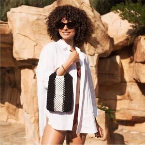 New in Package Laude The Label Black and Cream Gabby Macrame Bag, MSRP $118